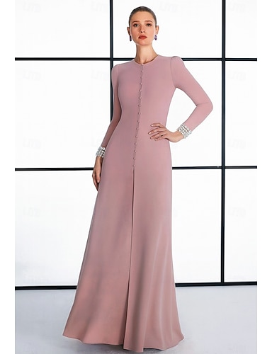 Tubino Colonna Lunghezza alla caviglia Abito da Cocktail Abito da cerimonia per signora Manica Lunga Girocollo Elegante Formale Ospite di nozze Laurea Raso con Tinta unita