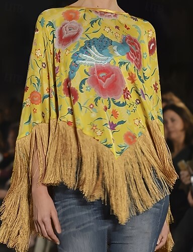 Per donna Camicia Boho Arricciato Volant Ombre Grafico Geometrico Elegante Vintage Quotidiano Manica Lunga Scollo a V Top Regolari Quotidiano Lavoro Ferie Giallo Fucsia Estate Primavera Autunno