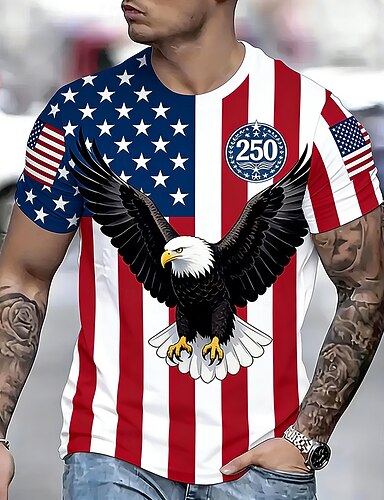 4 luglio 2026 250° Giorno della Memoria T-shirt da Uomo Manica Corta Stampa 3D Bandiera USA Casual