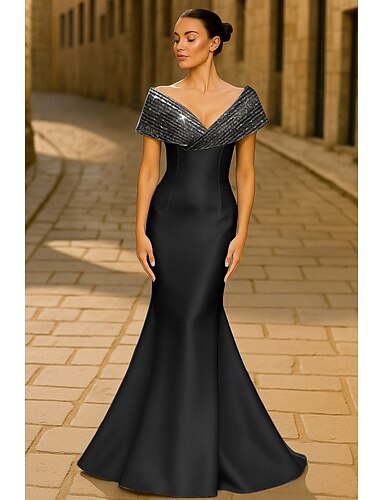 Per donna Abito da smoking Sirena Tromba Sirena Ospite di nozze Crepe Elasticizzato Elegante Manica 3/4 plissettata Lunghezza alla caviglia Bavero sciallato