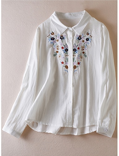 Per donna Camicia Boho Top Eleganti Ricamato Tinta unica Floreale Quotidiano Casual Manica Lunga Manica a Vescovo Colletto a Camicia Top Regolari Quotidiano Lavoro Uscire Bianco Primavera, Autunno
