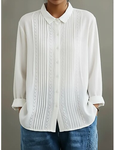 Per donna Camicia casual Camicia con Bottoni Blusa Arricciato Tinta unica Elegante Vintage Essenziale Manica Lunga Colletto a Camicia Top Regolari Quotidiano All'aperto Lavoro Blu Bianco Giallo Blu