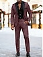 Per uomo Blazer + pantaloni eleganti Completi Affari Cocktail party Ricevimento di matrimonio Moda Casual Primavera Autunno Poliestere Semplice Tasca Bottoni Confortevole Monopetto Giacca Nero Rosso