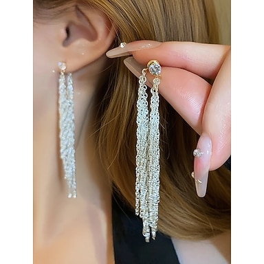orecchini pendenti con nappe in lega da donna, eleganti gioielli con frange a catena lunga, stile scintillante per matrimoni, feste serali ed eventi formali
