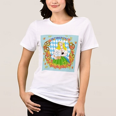 Costume Cosplay T-shirt Stampa Bavarese Tedesco Corte Classico Stile da strada per Per donna Adulti Stampa a caldo per Carnevale Birra Oktoberfest Feste Casual Quotidiano