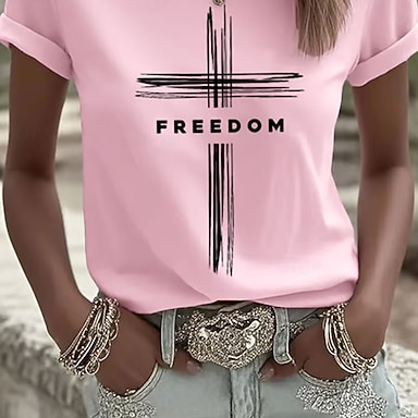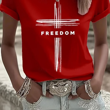 T Shirt patriottica delle donne per il Giorno dell'Indipendenza Grafica Lettera Vintage Elegante Classica Maniche Corte Collo A Giro Top Regolari Vestibilità Giornaliera Weekend Stampa Blu Nero
