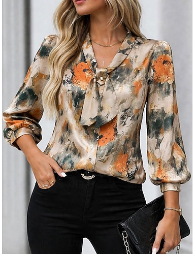 Per donna Blusa Allacciato Stampato Floreale Elegante Essenziale Casual Manica 3/4 Scollo a V Top Regolari Quotidiano Arancione Marrone Cachi Estate Primavera Autunno