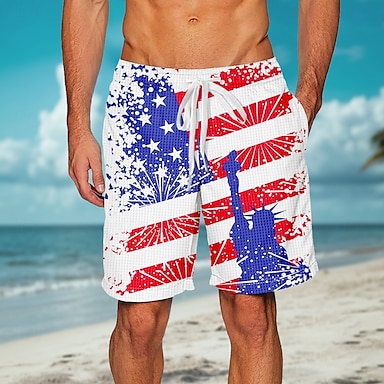 Per uomo Bandiera Americana Pantaloncini Waffle Pantaloncini da tuta Pantaloncini casual Misura del girovita medio Moda Casual Vacanza Jogging Allenamento Testurizzato Coulisse elastica in vita