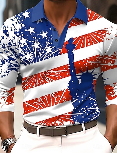 4 luglio 2026 250° Per uomo Bandiera Americana Polo Manica Lunga Magliette polo Bavero Casual Streetwear Abbigliamento quotidiano Abito da festa Stampa 3D Bottoni Primavera Autunno Inverno Blu Blu 1