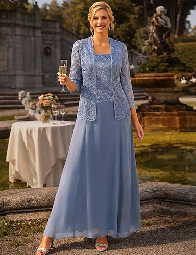 Set di abiti da invitato a matrimonio lunghi abito per madri della sposa maniche lunghe collo quadrato elegante semplice per invitati a matrimoni con colore solido