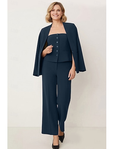 Per donna Abiti da 3 pezzi Formale Ospite di nozze Crepe Elasticizzato Elegante Minimalista Manica Lunga Lunghezza alla caviglia Revers dentellati Monopetto