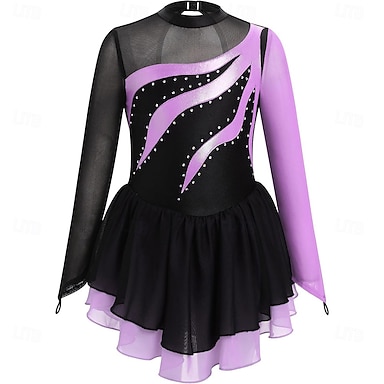 Abito da pattinaggio artistico Per donna Pattinaggio sul ghiaccio Vestito Viola Patchwork Orlo asimmetrico Spandex Rete Alta elasticità Allenamento Competizione Vestiti da pattinaggio sul ghiaccio