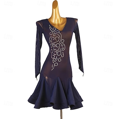 Danza Latina Vestito Strass Per donna Feste Allenamento Performance Manica Lunga Spandex Nylon