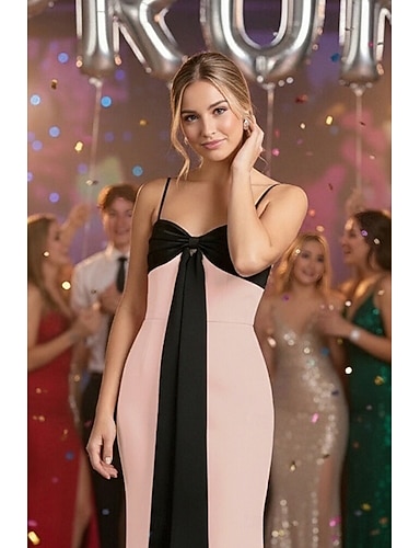 Tubino Colonna Lunghezza alla caviglia Abito da Ballo Abito Formale Abito da sera Abiti da Ballo Elegante Senza Maniche Spalline sottili Balli di fine anno Ospite di nozze con Fiocco/Fiocchi Blocco