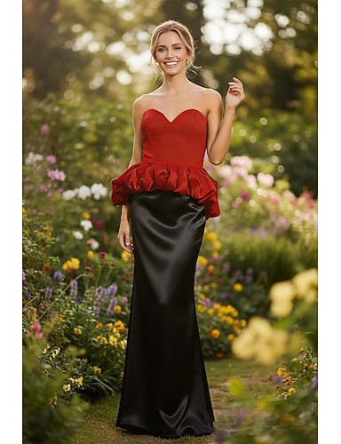 Sirena Tromba Lunghezza al pavimento Abito da invitata a nozze Abito Formale Abito da sera Abiti da Ballo Elegante Senza Maniche Scollo a Cuore Balli di fine anno Formale Raso Tessuto Elasticizzato
