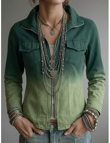 Per donna Camicia Camicia casual Blusa Cerniera Tasca Ombre Vintage Elegante Classico Manica Lunga Collo alla coreana Top Regolari Quotidiano Ferie Uscire Verde Primavera Autunno