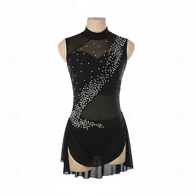 Abito da pattinaggio artistico Per donna Ragazze Pattinaggio sul ghiaccio Vestito Nero Patchwork Rete Alta elasticità Allenamento Competizione Vestiti da pattinaggio sul ghiaccio Classico Cristallo