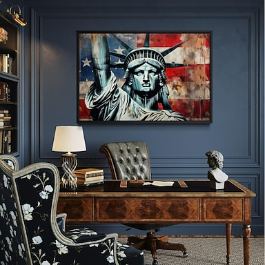 Arte da parete della Statua della Libertà – Stampa su tela della bandiera americana opera patriottica per ufficio casa o decorazione della stanza di studio