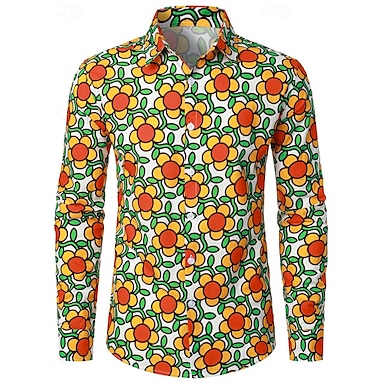 Retrò Vintage Boho Anni '70 Camicia Hippie Floreale Costume Per uomo Halloween Carnevale Festival Musicale Festa a tema retrò Adulti Camicia