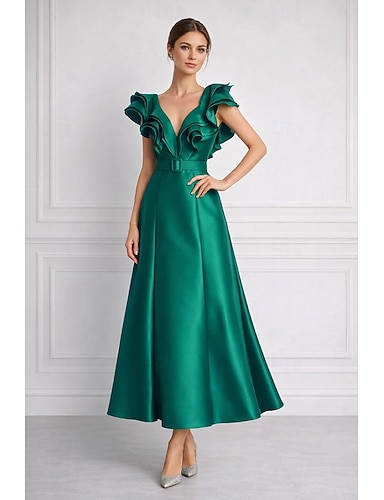 Vestiti A-Line da Invitata a Matrimonio Vestito Elegante Matrimonio Invitata Fidanzamento Lunghezza Piena Senza Maniche V Scollatura Chiffon con Pieghe Farfalla
