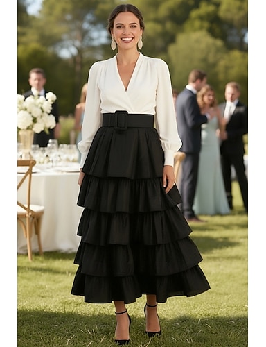 Due Pezzi Tubino Colonna Abito Lunghezza alla caviglia Abito da invitata a nozze Abito da cerimonia per signora Manica Lunga Scollo a V Elegante Abito Nero Formale Ricevimento di matrimonio Riunione