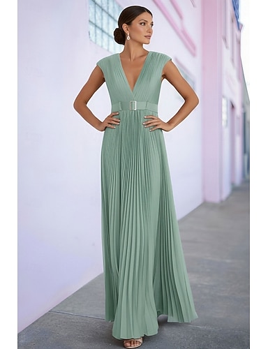 Abito da Sera Sheath Abito Imperiale Elegante da Sera Strascico Traino a Raso Lungo Maniche a Barchetta per Matrimonio in Autunno Ospite in Chiffon con Pieghe