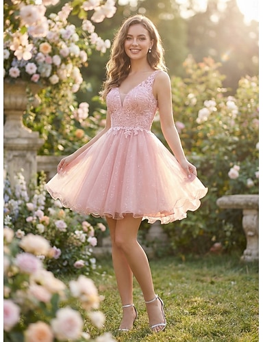 Linea ad A Lunghezza alla caviglia Abiti da Cocktail Elegante Vintage Floreale Manica Corta Regina Anna Matrimonio Formale Vestito Rosa Raso Pizzo con Fiore ricamato Ricamo Tasca