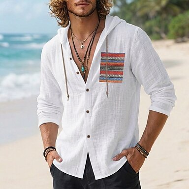 Per uomo Camicia Camicia di lino Camicia Estiva Camicia da Spiaggia Camicia con Bottoni Camicia con cappuccio Boho Casuale Vacanza Blu Bianco Rosa Rosso Manica Lunga Con Cappuccio Estate Primavera
