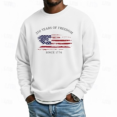 Per uomo Grafico Bandiera Americana Felpa Sport Moda Quotidiano Classico Manica Lunga Girocollo All'aperto Vacanza Nero Bianco Rosso Grigio chiaro Stampa Primavera Autunno progettista S M L XL XXL