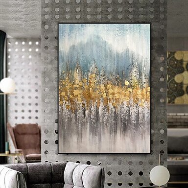 dipinto a mano grande dipinto a olio astratto paesaggio urbano nero e oro arte murale pittura moderna decorazione murale neutra moderna decorazione paesaggio urbano grigio