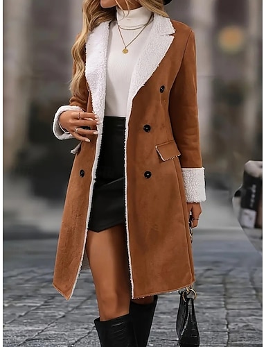 Per donna Cappotto Invernale Giacca Invernale Confortevole Traspirante Tasca Bottoni Casual Semplice Vacanza Streetwear Casuale Abbigliamento quotidiano Doppiopetto Lungo Collo ripiegato Vestibilit
