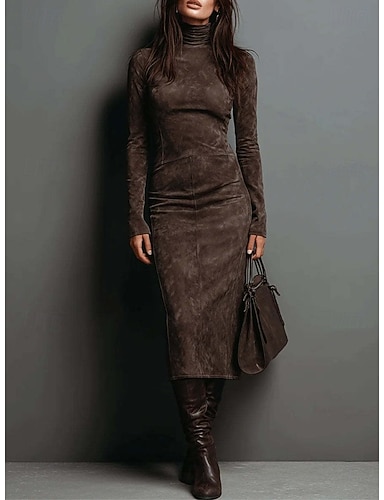 Per donna Abito Midi Tubino Vacanza Casual Boho Quotidiano Data Taglia piccola Semplice Manica Lunga Dolcevita Marrone Scuro Marrone chiaro Grigio Autunno Inverno