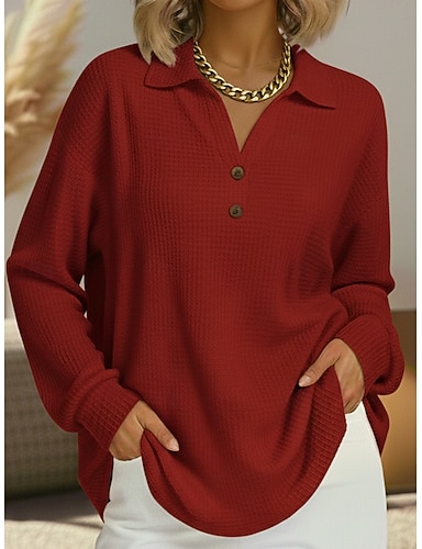 Per donna Blusa Bottoni Tinta unica Elegante Casual Manica Lunga Scollo a V Top Regolari Quotidiano Nero Bianco Vino Arancione Primavera
