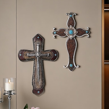 decorazione da parete a forma di croce gotica vintage, ornamento religioso in resina da appendere con motivo floreale classico, decorazione da parete per la casa per la festa di Ognissanti,