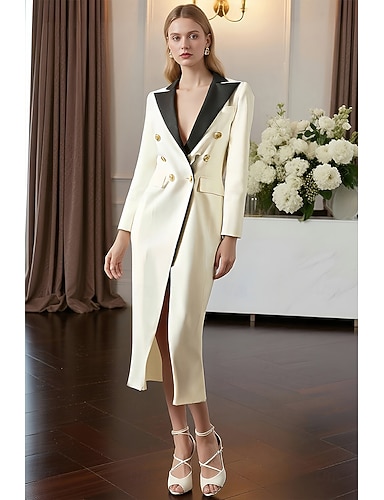 Per donna Abito da smoking Guaina Affari Ufficio Formale Raso Elegante Manica Lunga Midi Risvolto a punta Doppiopetto
