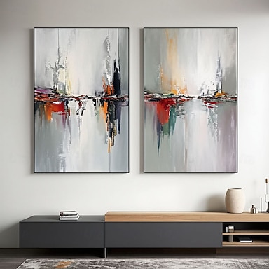2 pezzi di grandi dimensioni, dipinti originali astratti grigi, dipinti su tela rossa, dipinti su tela nera, dipinti su tela moderna astratta