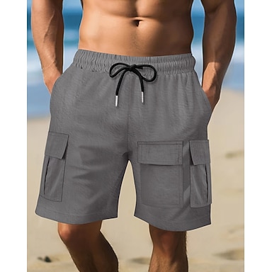 Per uomo Pantaloncini modello cargo Pantaloncini Pantaloncini di lino Pantaloncini estivi Pantaloncini da spiaggia A cordoncino Vita elastica Multi tasca Liscio Comfort Traspirante Lunghezza del