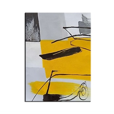 Pittura A Olio Fatta A Mano Dipinta A Mano Arte Della Parete Moderna Giallo Grigio Nero Linea Astratta Decorazione Della Casa Arredamento Cornice Tesa Pronta Da Appendere