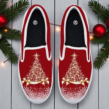 scarpe slip-on natalizie rosse da donna con stampa di calici di spumante: calzature eleganti per le feste con design scintillante, perfette per feste di Natale, uscite informali e regali
