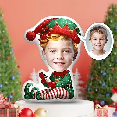 cuscino personalizzato con foto natalizia, cuscino umanoide fai da te creativo, regalo di compleanno divertente per gli amici, cuscino con foto unica, regali fotografici personalizzati per Natale.