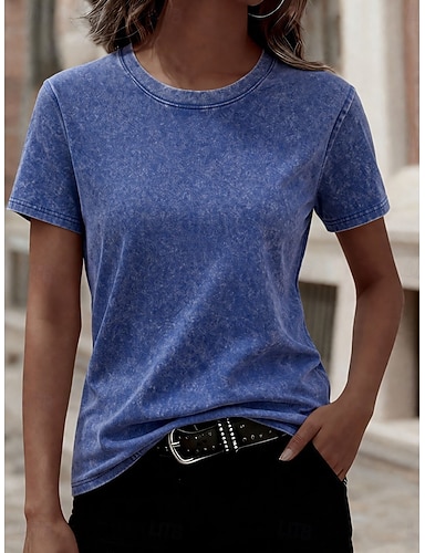 t-shirt da donna 100% cotone, top vintage lavati, alla moda, eleganti, classici, maniche corte, girocollo, top lunghi, casual, quotidiani, spiaggia, rosa, rosso, blu, verde erba, nero, arancione, estate, primavera