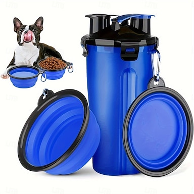 Set composto da 1 tazza per acqua/cibo + 2 ciotole pieghevoli. Borraccia da viaggio per cani con ciotola pieghevole, contenitore per cibo per animali domestici 2 in 1 con ciotola pieghevole. Ciotola
