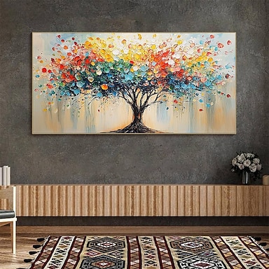 Mintura, dipinti a olio su tela, dipinti a mano di fiori e alberi in 3D, decorazioni murali, quadri astratti moderni per la casa, dipinti arrotolati senza cornice e non stirati.