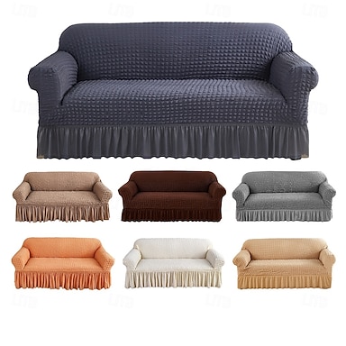 Copridivano in tulle con gonna a bolle, copridivano completamente elastico, copridivano antiscivolo e antipolvere, copridivano estensibile per mobili da soggiorno