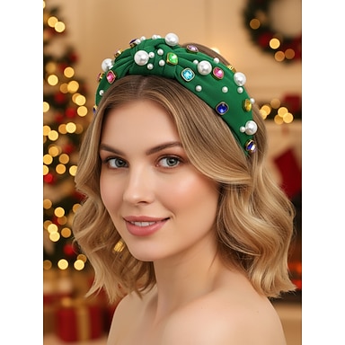 cerchietto natalizio verde da donna con perle &strass multicolori, elegante accessorio imbottito per capelli per feste, regali &abiti invernali