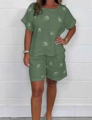 Per donna Set di biancheria in cotone Manica Corta Girocollo Ombre Grafico Elegante Bohemien Attivo Casuale Quotidiano Blu Rosa Beige Estate Vestibilità regolare