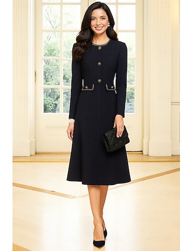Linea ad A Lunghezza Tè Vestito da Festa Abito da Cocktail Abito da invitata a nozze Abito da cerimonia per signora Manica Lunga Girocollo Elegante Formale Serata Formale Ricevimento di matrimonio