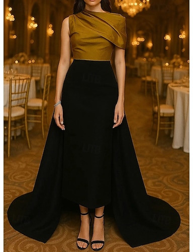 Linea ad A Strascico a Terra Abito da Sera Abito da ballo con sopragonna Abito formale Elegante Scintillante Stile Celebrità Senza Maniche Senza Spalle Festa in giardino Matrimonio Raso Elasticizzato