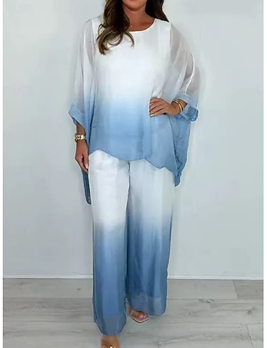 Per donna Set di Pantaloni Mezza Manica Girocollo Grafico Geometrico Elegante Vacanza Casuale Quotidiano Vacanza Blu Bianco Viola Estate Vestibilità regolare