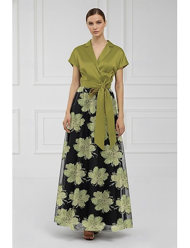 Linea ad A Abito Lunghezza al pavimento Vestito maxi Vestito da Festa Abito da Cocktail Abito da cerimonia per signora Manica Corta Scollo a V Elegante Vintage Lussuoso Formale Ospite di nozze Derby